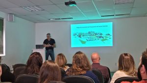No dia 25 de setembro ocorreu uma visita ao Instituto de Psiquiatria de Santa Catarina (IPq-SC), com o objetivo de apresentar projetos desenvolvidos ao longo de 11 anos de parceria com o Núcleo de Gestão de Design e Laboratório de Design e Usabilidade (NGD-LDU) da Universidade Federal de Santa Catarina (UFSC), bem como prospectar oportunidades de colaboração futura. Durante o encontro, foram compartilhados resultados parciais do projeto atual intitulado “Design e Saúde: otimizando os processos e procedimentos por meios de produtos e serviços, junto a pacientes e colaboradores, uma abordagem interprofissional”, aprovado pela chamada CNPq/MCTI nº 10/2023 – UNIVERSAL, Coordenado pelo Profº Dr. Eugenio Merino (PosDesign e PPGEP | UFSC) e do Projeto de pesquisa: “Design, Saúde, e Gestão |PCU PS| Design Centrado No Ser Humano DCSH: uma abordagem interprofissional em projetos”, da Universidade do Estado de Santa Catarina (UDESC) (CNPq), Coordenado pela Profª Dra Giselle Merino (PPGDESIGN | UDESC; PosDesign | UFSC).